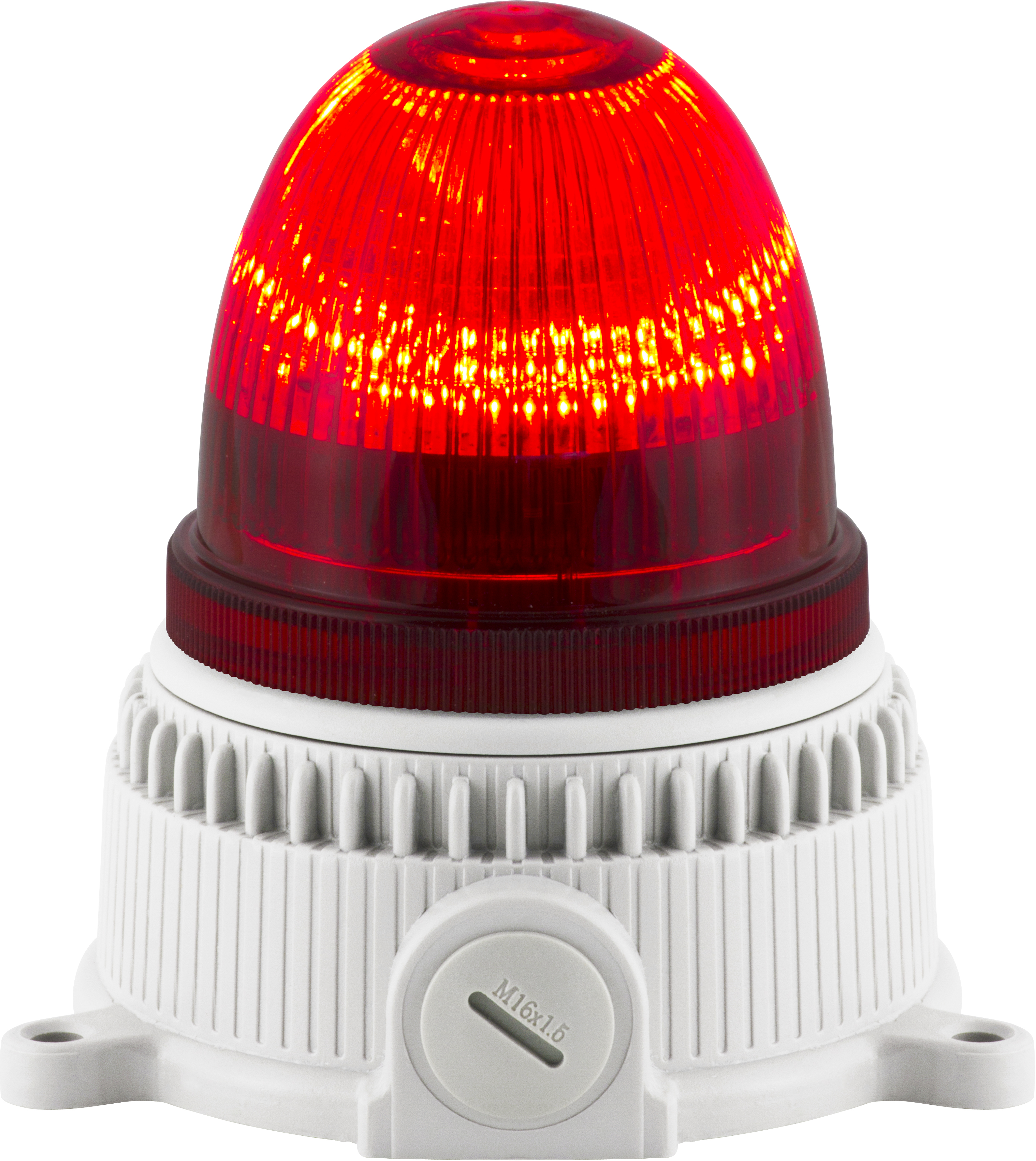 Balise de signalisation avec LED SMD. Effet lumineux fixe, flash simple, double et triple sélectionnable via micro interrupteur. 4 couleurs disponibles. Entrée presse-étoupe M16.